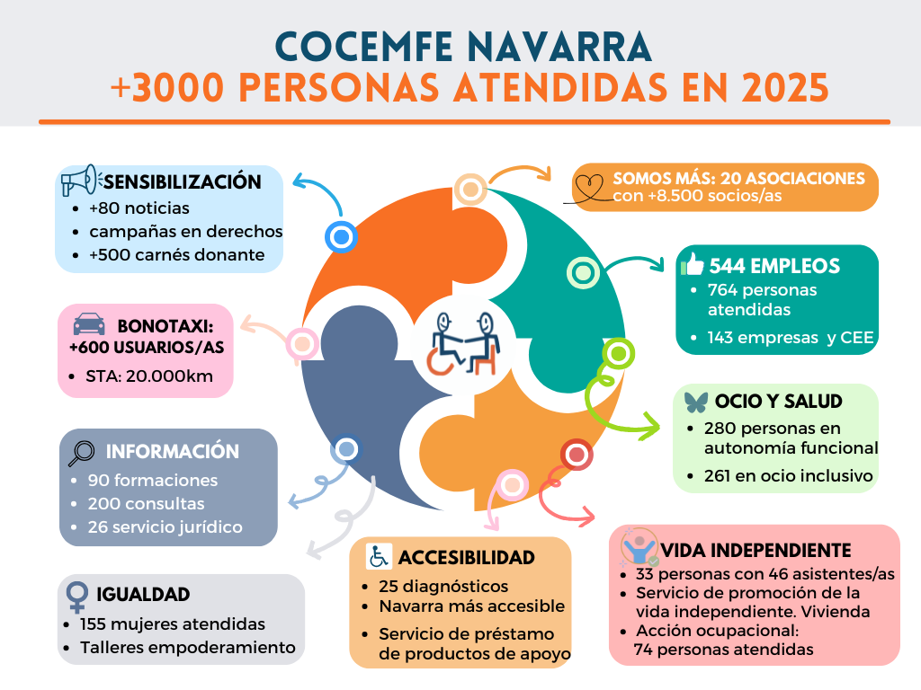 COCEMFE Navarra superó las 3.000 personas atendidas en 2025 y alcanzó las 20 asociaciones de la discapacidad
